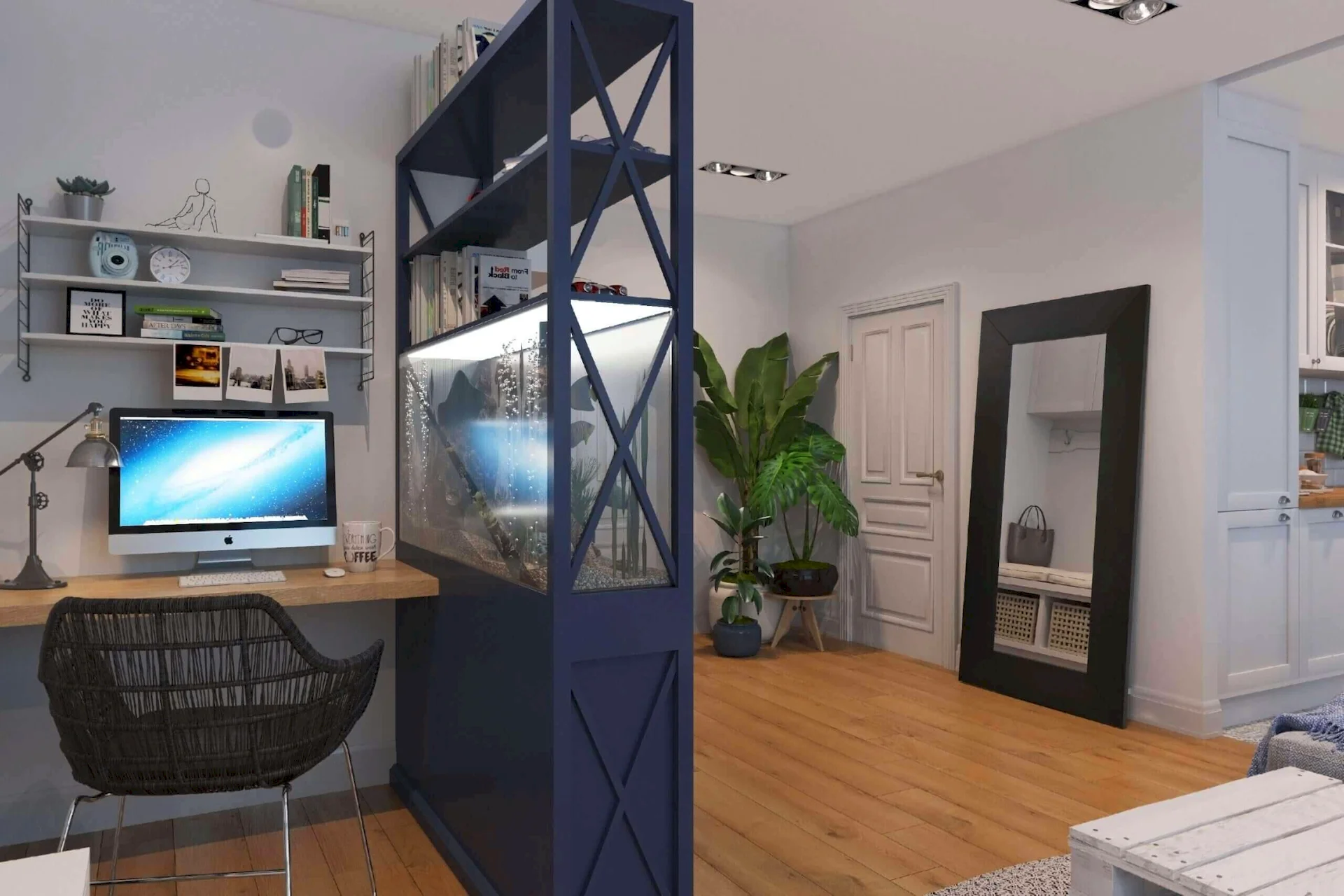 Студию мы нашли совершенно случайно. Квартира была куплена, мы отдыхали на океане, и пролистывая лежа на пляже запретграмм в поисках интересных интерьерных решений, я наткнулась на них. Из предложений “по знакомству” перед нами были варианты “эконом” и “премиум”, а нам хотелось той самой “золотой середины”. И абсолютно не зная лично, познакомившись вскользь с их проектами онлайн, мы взяли и решились по прилету на личную встречу. Ребята нам сразу понравились, расположили к себе, мы оказались на одной волне. Больше
